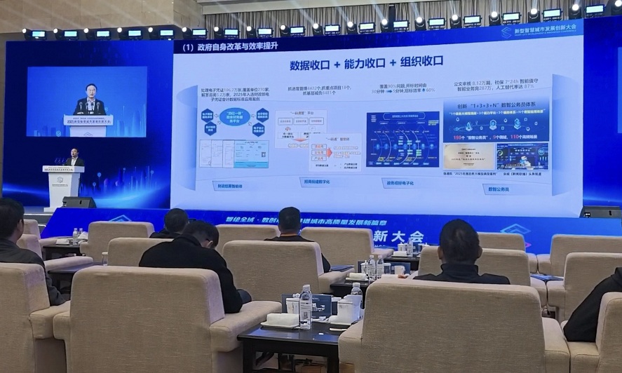2025年11月13日,2025中国新型智慧城市发展创新大会在济南山东大厦召开,国家发展改革委党组成员、国家数据局党组书记、局长刘烈宏,山东省副省长、省政府党组成员孙喜民,济南市委副书记、市长于海田,专家院士和头部企业以及部分省市部门负责人参会。会上,中国工程院院士沈昌祥,中共中央党校(国家行政学院)教授、博士生导师汪玉凯,国家信息中心信息化和产业发展部主任单志广,中国信息通信研究院产业与规划研究所所长徐志发,北京航空航天大学副校长、党委常委吕卫锋,国家数据发展研究院院长胡坚波等专家分别围绕新型智慧城市建设和全域数字化转型等作主旨演讲。
