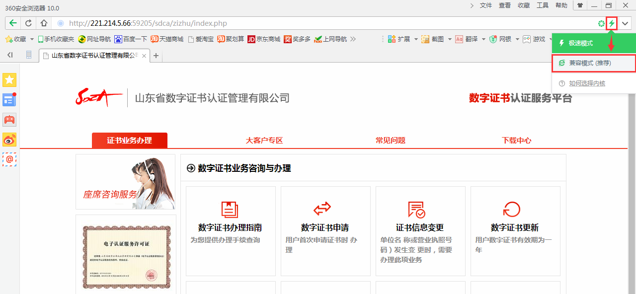 注意:请务必使用360浏览器的兼容模式如下图所示: