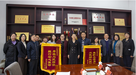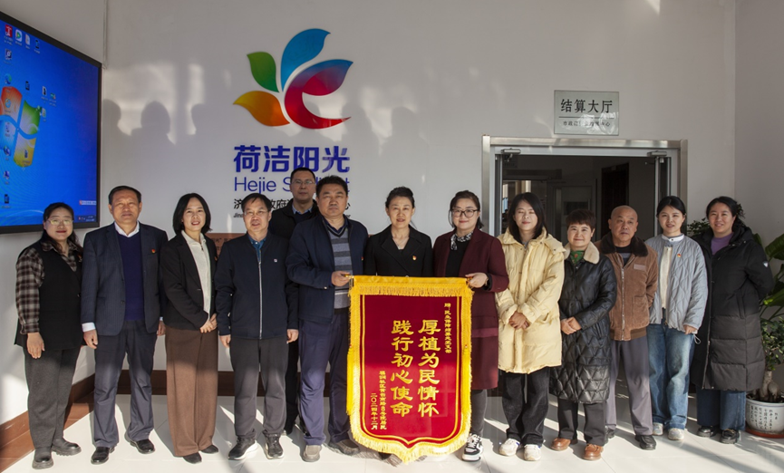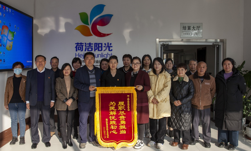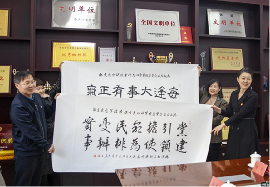 12月11日上午,洪家楼街道办事处民生事务和便民服务中心李主任、福润社区黄主任以及黄台南路8号院两名居民代表送来了两面鲜红的锦旗以及社区居民亲笔书写的两幅书法作品表达感谢,上面写着“履职尽责勇担当 为民解忧践初心”“党建引领担使命 为民排忧办实事”等。李主任感激地说:“这次一户一表改造工程解决了福润社区多年来的顽疾,真正改善了居民的用电质量,让全体居民生活更安心、更放心。”社区居民代表也激动地说:“感谢你们一直尽职尽责为我们老百姓办实事,以后我们再也不用因为担心失火,轮流去配电室值班看护电表了。” 中心党组成员、副主任尹树莉、机关党委专职副书记李国华、二级调研员韩兴春参加了此次活动。